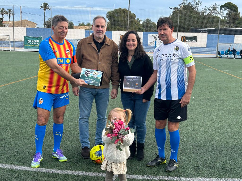 Lía y Lubo Penev reciben el cariño y solidaridad de las Leyendas del Valencia CF y las del Hércules CF